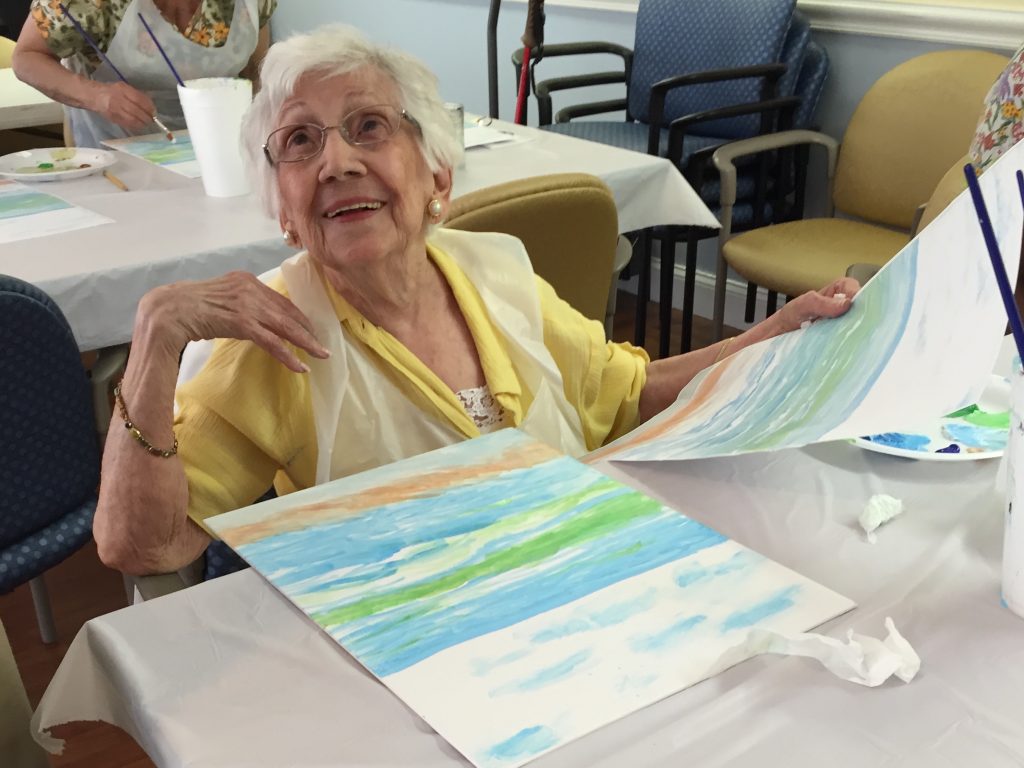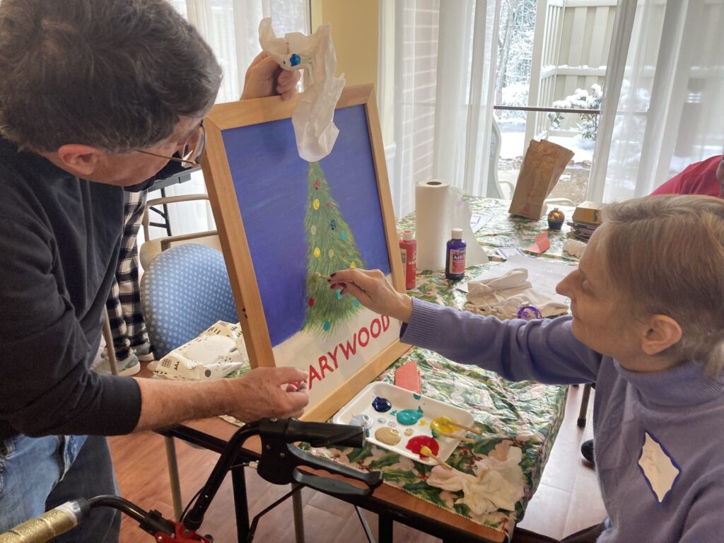 Twice monthly at Marywood Senior Apartments, residents come together to make art in an uplifting environment alongside community volunteers and art instructors. Participants are free to create guided abstract art projects with authentic tools – based on the best-practice OMA model – or to develop artwork with the guidance of the art instructor. The original artwork is displayed in an annual art show and exhibited in the broader community.